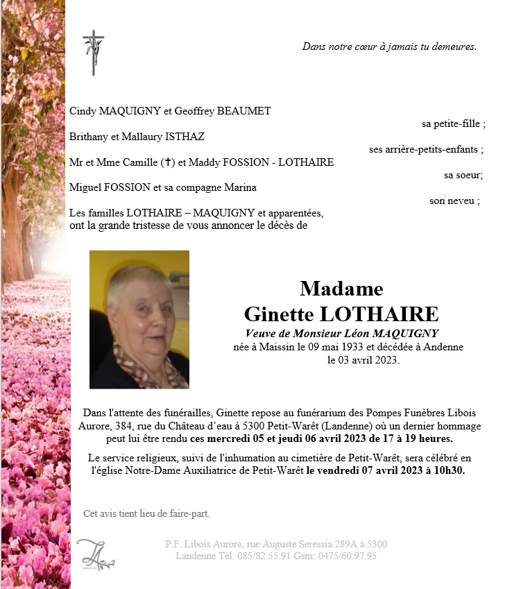 Madame Ginette LOTHAIRE