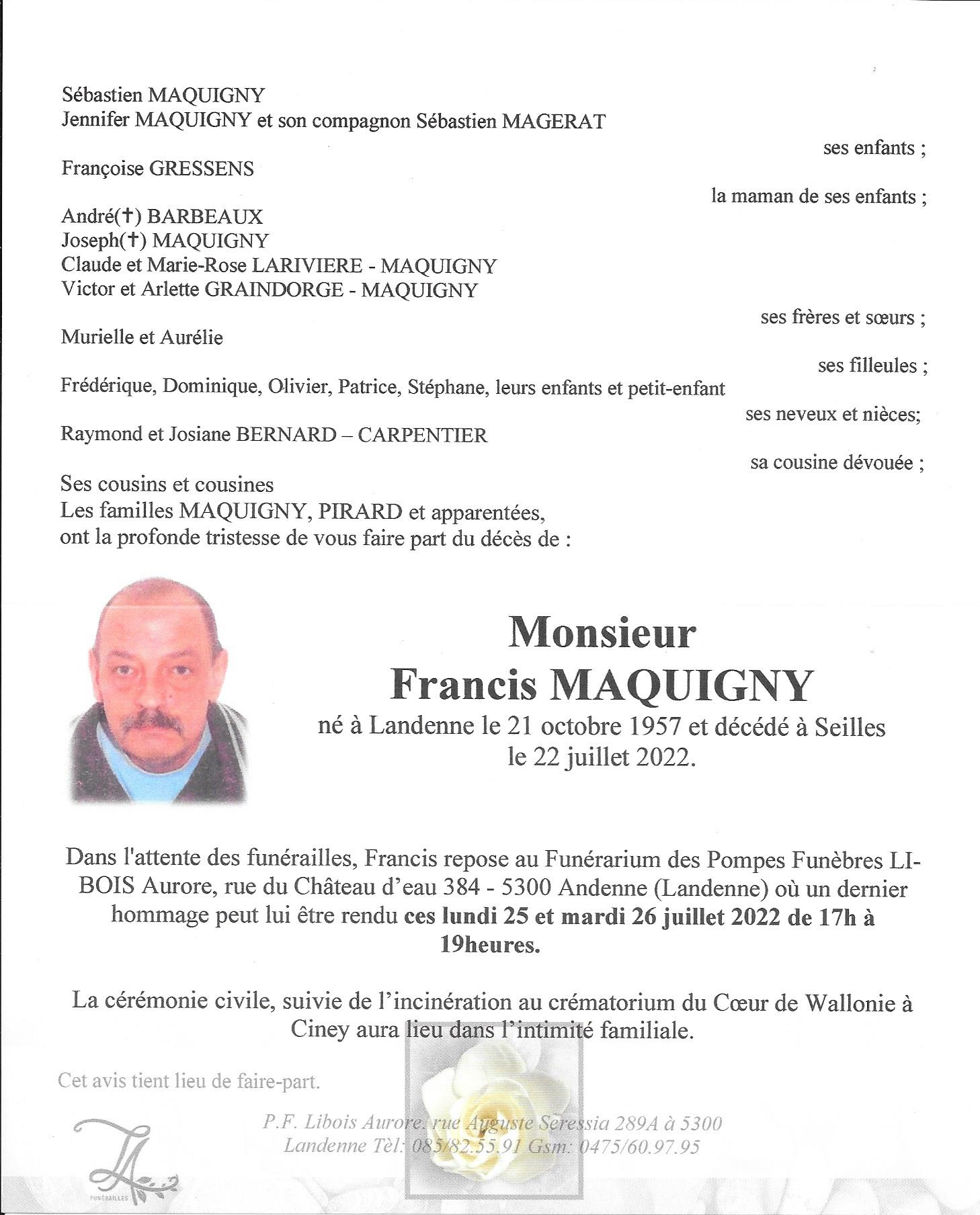 Monsieur Francis MAQUIGNY