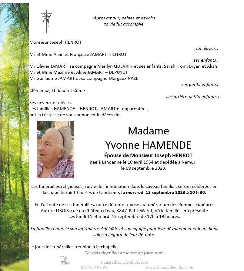 Madame Yvonne HAMENDE