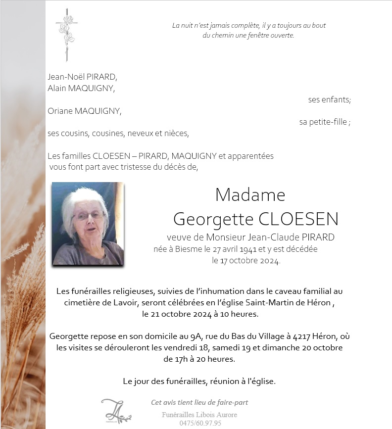 Madame Georgette CLOESEN